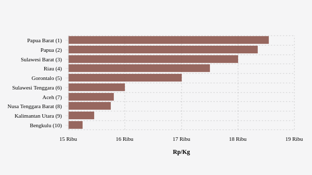 Harga gula pasir kualitas premium harian di pasar modern Papua Barat menjadi yang termahal se-Indonesia dengan harga jual Rp 18.550 per kg. Dibandingkan sebulan lalu, harga gula pasir kualitas premium di provinsi ini tidak mengalami perubahan. Harga jual tertinggi yang pernah dicatat di wilayah ini adalah Rp. 21.500 per kg.