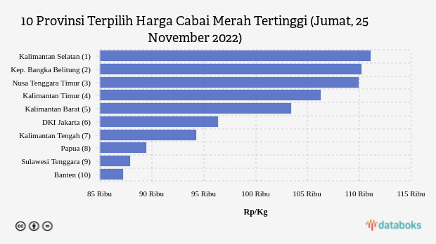 Harga Cabai Merah di Kalimantan Selatan Rp 111,05 Ribu per Kg (Jumat, 25 November 2022) - Databoks