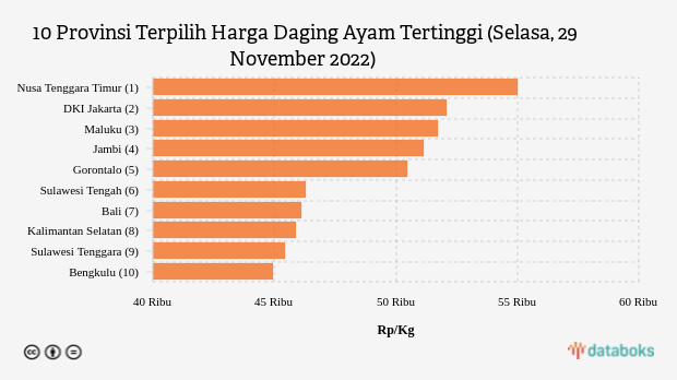 Harga Daging Ayam di Nusa Tenggara Timur Termahal Se-Indonesia (Selasa, 29 November 2022) - Databoks